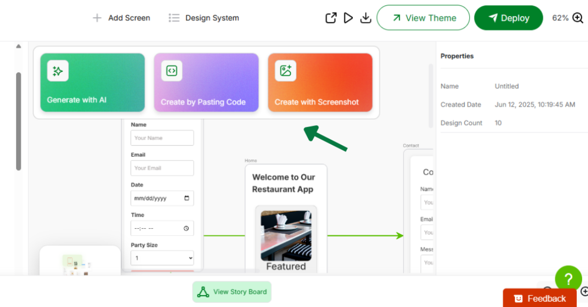 Inside AppForceStudio, you can generate fully designed, interactive screens in seconds – using AI, uploading screenshots, or pasting code. Whether you’re starting from scratch or expanding your existing build, adding screens is just a click away.
